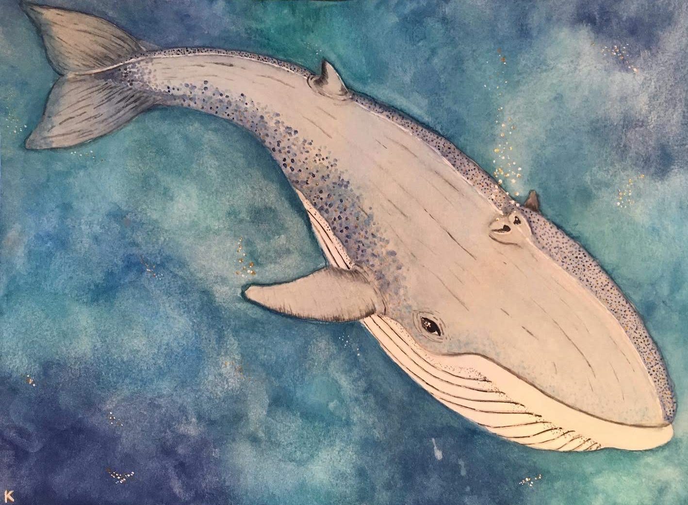 Commissioned watercolor painting of a whale.